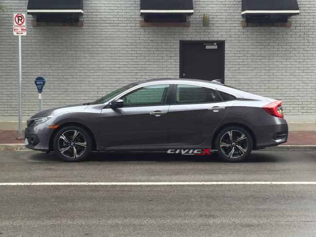Prototipe spesifikasi-produksi mobil ini terparkir di sana danmemamerkan pesona lampu ekor berbentuk ‘bumerang’ gagahnya, dengan gardu pengapian yang total ramah lingkungan, yang dibesut konsep Civic yang juga dipamerkan di New York International Auto Show 2015. Model sedan ini tampak sangat berbeda dari pendahulunya, khususnya di bagian bawah pinggang hingga ke pilar C belakang. Di sisi lain, atapnya pun tampak sedikit melandai sehingga mempertegas bentuk aerodinamis pada Civic generasi ke-10 ini. Ditahbiskan sebagai kendaraan yang paling ambisius dalam sejarah Honda, sedan Civic ini memang layak dikagumi, khususnya dengan tersedianya pilihan lampu besar LED dan besutan mesin sarat-kekuatan, turbo 1,5-liter. Daya pacu yang dihasilkannya disalurkan ke roda-rodanya melalui CVT atau transmisi 6-percepatan. Perusahaan ini juga mengusung varian CNG dan hybrid, namun belum jelas kapan tersedia untuk dipasarkan.