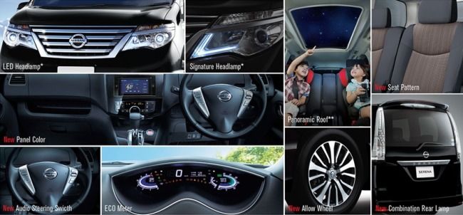 Faktor nyaman memang menjadi nilai utama. Selain ruang kabin yang luas, Serena juga dibekali fitur yang memanjakan penumpang. Apalagi Serena Autech yang menjadi tipe termahalnya. Mobil ini memiliki semua fitur yang dimiliki oleh Serena tipe HWS (Highway Star). Tombol engine start/stop, cruise control, sistem multimedia 2-DIN layar sentuh berukuran 6-inci dengan fungsi bluetooth yang dapat memutar DVD, monitor atap LCD berukuran 10-inci, audio steering switch dan lingkar kemudi yang dibalut kulit. Bedanya, pada varian termahalnya Serena dilengkapi dengan panoramic roof.