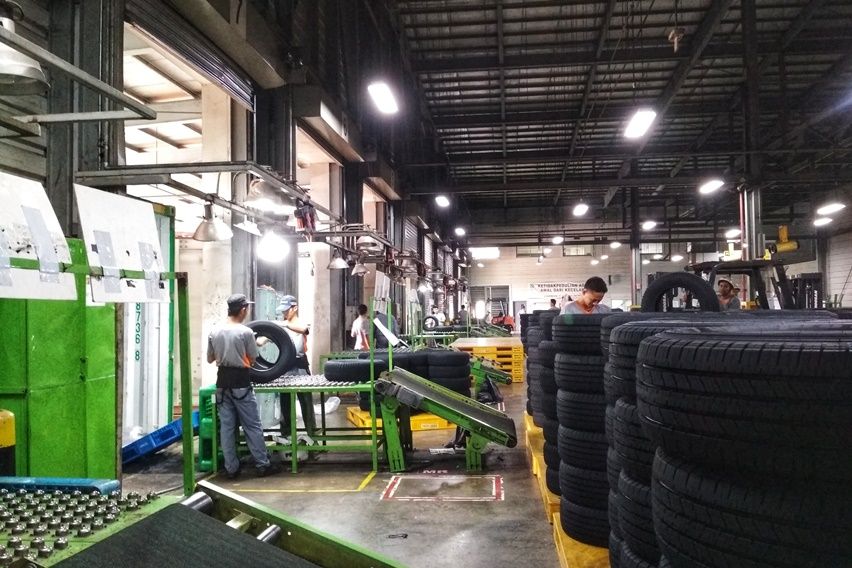 Dari luar, pabrik HTI tampak besar dan megah. Panjangnya saja lebih dari satu kilometer. Area yang dilewati dalam tur pabrik kali ini amatlah luas. Tahap awal dalam proses produksi ban adalah proses mixing atau pencampuran bahan baku mentah. Setelah menjadi lembaran karet, memasuki proses pencetakan tapak dan dinding ban. Selanjutnya, pemotongan dan assembling atau penggabungan semua bagian ban. Kemudian masuk tahap vulkanisasi atau pematangan dengan memanaskan ban dalam suhu 160 derajat selama 12 menit.