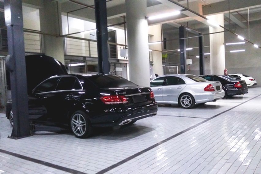 Fasilitas bengkel milik Nusantara ini menerima segala jenis Mercedes. Mulai dari mobil klasik hingga yang teranyar. Selama pelanggan mau menunggu komponen, mobil klasik pun bisa dirawat di bengkel resmi ini. Komitmen ini terbukti, pasalnya kami melihat sebuah Mercedes 'boxer' facelift di salah satu working bay.
