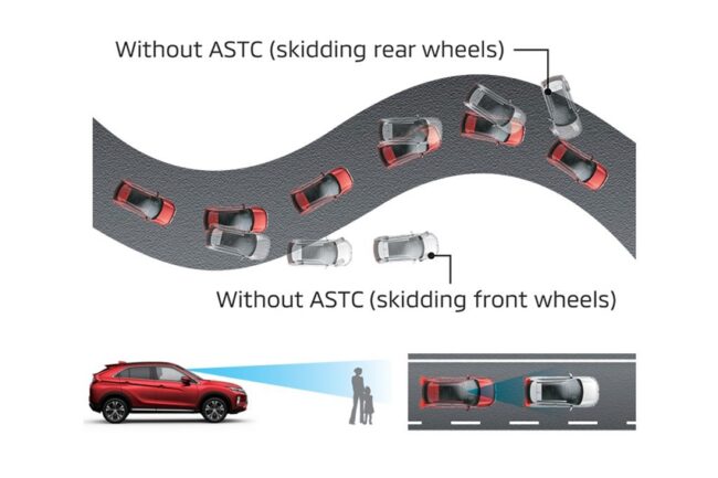 Mitsubishi juga melengkapi Eclipse Cross dengan Active Yaw Control (AYC) yang memanfaatkan sensor khusus untuk mengoptimalkan manuver kendaraan. Keamanan juga dapat lebih dimaksimalakan saat kondisi jalanan licin dengan adanya fitur Active Stability & Traction Control (ASTC) yang secara otomatis mengontrol laju mobil ketika sedang bermanuver agar tidak mudah tergelincir.