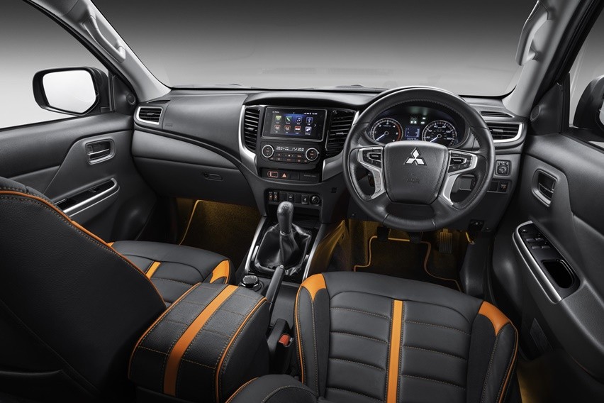 Warna spesial di eksterior terbawa hingga ke dalam. Jok kulit dengan desain seperti perut ‘six-pack’ yang dikombinasikan bahan suede ‘Alston’ turut diberi aksen jingga di beberapa panel dan jahitan. Nomor edisi SVP II dan logo SVP terjahit di headrest. Standar kelengkapannya sesuai L200 spesifikasi Inggris. Termasuk sistem Mitsubishi Smartphone Link Display Audio (SDA) yang dapat mengakses berbagai aplikasi dari smartphone Apple atau Android, di monitor dan voice control. Selain itu, ada juga sensor hujan, Bluetooth, Bi-Xenon headlamp dan LED daytime running light (DRL), cruise control dan kamera parkir.