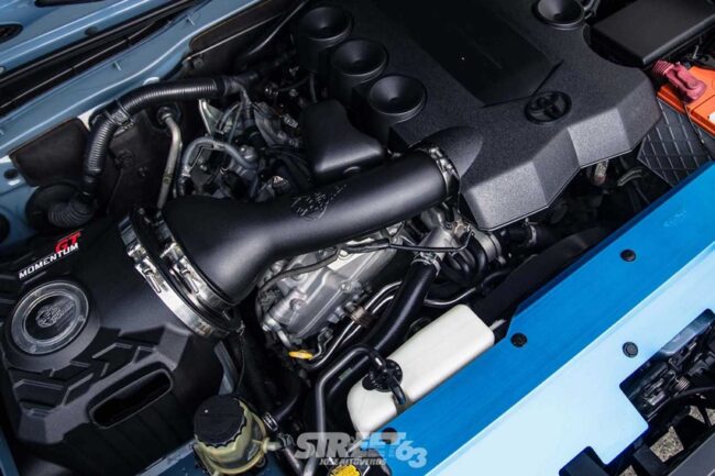 Jantung mekanis ikut diotak-atik. Atoy Customs menggandeng DTM Motorsport untuk men-tuning ECU mesin 1GR-FE V6 berkubikasi 4,0 liter. Kemudian saluran intake diperkuat AFE GT Momentum. Komponen lain seperti AFE Throttle Body spacer dibenamkan. Performa turut didukung ubahan sistem pembuangan gas. Sistem catback diimplementasikan, yang terdiri dari header long tube AC, pipa Y AC dengan dua resonator bullet, muffler Borla Atak Crate dan Borla Black chrome tips. Alhasil tenaga yang dikeluarkan kini mencapai 238 hp dan torsi 343 Nm dengan meminum bahan bakar RON95.