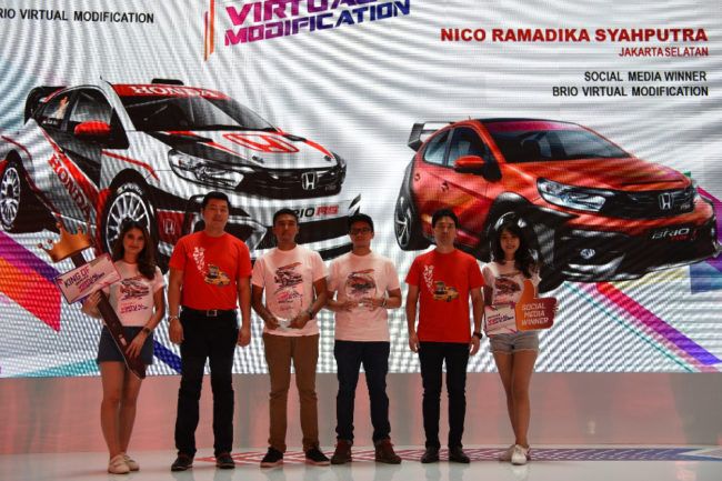 Setelah menanti beberapa bulan, Honda Prospect Motor (HPM) mengumumkan pemenang dari Honda Brio Virtual Modification. Ajang virtual modifikasi (V-mod) itu dimenangkan oleh Julian Johan dengan desain ubahan dan balutan corak berkarakter reli. Pria yang akrab disapa Jeje ini merupakan pembalap off road dan aktivis sosial media.