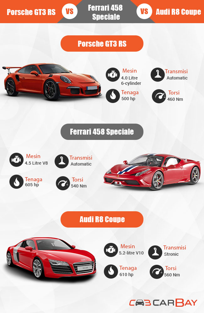 New 2016 Porsche 911 GT3 RS Vs Ferrari 458 Speciale Vs Audi R8 Coupe – perbandingan
