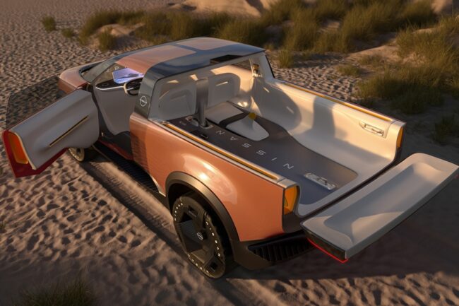 Konsep terakhir adalah Nissan Surf-Out. Ini merupakan kendaraan konsep double cabin yang digunakan untuk beragam aktifivitas. Hadir dengan desain tangguh, kendaraan ini disiapkan untuk dapat melewati beragam kondisi jalan namun tetap menawarkan kenyamanan dan kemampuan pengendalian maksimal. Surf-Out juga hadir dengan flat cargo space serta beragam mode pengisian daya yang dapat digunakan di mana saja. (Sta/Tom)