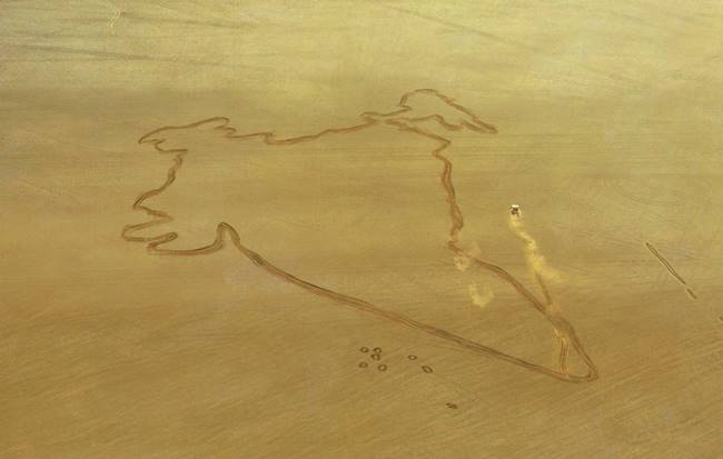 Peta ini digambar di atas permukaan danau Sambhar yang telah mengering di wilayah Rajasthan. Tak mudah untuk merekayasa garis luar sebuah negara dengan tingkat akurasi seperti itu. Namun dengan kecepatan serta ketajaman GT-R, hal itu seolah menjadi mudah.