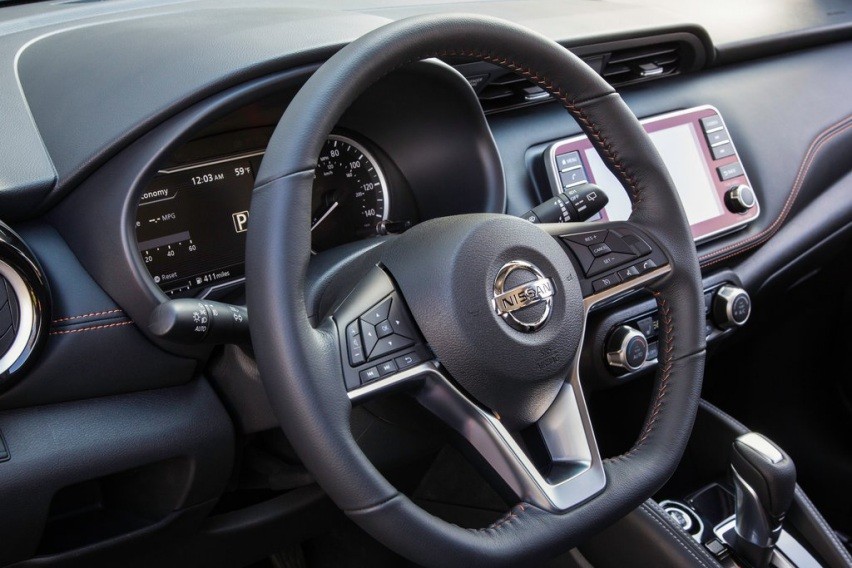 Di Amerika Serikat, Kicks mengisi segmen kompak dengan kabin 5-seater. Didominasi warna hitam, ruang kabin lebih lega dibandingkan Juke. Itu karena Kicks punya dimensi lebih panjang dan tinggi, serta jarak sumbu roda lebih panjang dari Juke. Sedang kelengkapannya, ada layar sentuh 7 inci tertanam pada dasbor. Di dalamnya sudah tersedia konektivitas seperti Bluetooth, Apple CarPlay, Android Auto dan sejumlah konektivitas standar. Untuk varian SR malah lebih hebat karena punya sistem audio Bose dengan speaker 2.5 inci UltraNearfield neodymium. Speaker ultra ringan itu tertanam di headrest pengemudi yang menghasilkan pengalaman musik dalam kabin lebih menyenangkan.