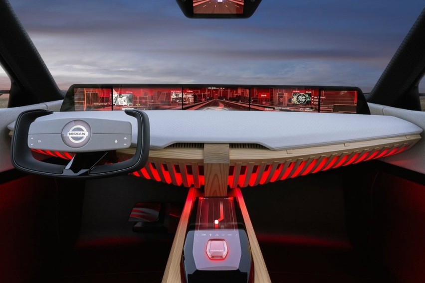 Bagian dasbor minimalis dengan layar besar membentang. Konsol tengah punya fitur unik yang disebut floating commander dan bisa mendeteksi pergerakan penumpang melalui sensor gerak. Selain itu masih banyak teknologi canggih nan unik lain yang bisa ditemui pada kabin Nissan Xmotion Concept.