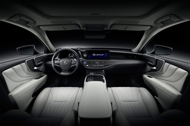 Beralih ke interior. Tatanan kabin didekorasi melengkapi keindahan eksterior. Ornamen tersedia untuk pertama kali, yakni: Nishijin & Haku. Kata itu mengacu pada daun logam. Ada semacam ekspresi kilau cahaya dari brokat Nishijin dan kilau platinum. Lexus sengaja meracik itu agar memberi suasana nyaman, santai, penuh kemewahan.