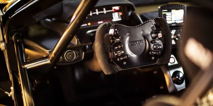 Kabinnya sudah pasti memiliki roll cage yang melindungi pengemudi di sirkuit saat mengalami insiden. Jok bucket Sparco dengan sabuk pengaman 6 titik diaplikasikan. Ini semakin memastikan keamanannya. Kabinnya dipenuhi dengan material karbon yang terkenal punya durabilitas mumpuni. Informasi terkait kendaraan disediakan oleh sistem MoTec, yang bisa digunakan untuk memperlihatkan tampilan kamera belakang. Menariknya, Ford memberikan opsi bagi konsumen yang ingin menambahkan kursi penumpang.