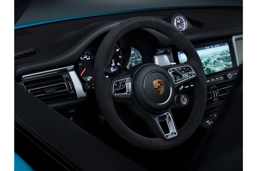 Desain 911 diaplikasikan ke bagian interior Macan baru, dengan setir GT opsional. Ada Sport Response Button di steering wheel, sebagai bagian Sport Chrono Package. Porsche juga memperluas daftar pilihan kenyamanan. Misalnya sebuah ioniser untuk meningkatkan kualitas udara di kabin. Juga terdapat pilihan warna eksterior baru seperti: Miami Blue, Mamba Green Metallic, Dolomite Silvet Metallic dan Crayon. Namanya juga SUV premium, pastilah tersedia paket interior yang bikin mobil lebih mengikuti selera personal.