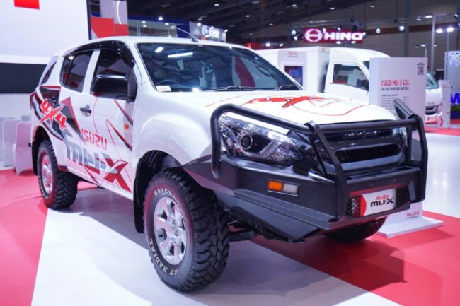 Sama halnya dengan Toyota, Isuzu yang turut menyajikan kendaraan berbalut perangkat aftermarket. Namun, bedanya model yang dipercaya adalah MU-X. SUV untuk penumpang yang fungsinya bisa dijadikan kendaraan operasional. Mobil bermesin 2,5-liter itu disempurnakan wujudnya dengan front bar yang dikombinasikan dengan bumper lebih tebal. Ban multi terrain untuk melibas bermacam jalur. Hingga decal yang membuatnya makin atraktif. Sayang tak disebutkan berapa harganya. (Hfd/Ano)