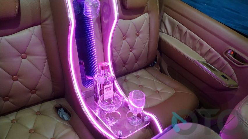 Di kabin Ertiga, hampir semua permukaan dibalut MBtech Camaro. Kombinasi kelirnya coklat muda dan tua. “Jujur saja saya tidak suka warna yang cepat kotor. Makanya dipilih balutan kulit coklat. Jadi terlihat lebih mewah dan elegan. Konsepnya tetap VIP. Jadi ditampilkan minibar di depan dan baris kedua. Untuk merombak semuanya sekitar dua bulan. Sedangkan khusus untuk interior, butuh 20 hari. Paling sulit di bagian dasbor. Soalnya harus rombak total dan semuanya dibalut MBtech. Bahkan setirnya juga dilapis kulit,” terang Yudi Suhartono, usai menerima award.