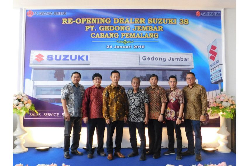 Diler yang dibangun Suzuki bersama PT Gedong Jembar diresmikan kemarin, Kamis (24/01). Dalam perayaan ikut hadir Presiden Direktur PT SIS Seiji Itayama, 4W Deputy Managing Director PT SIS Setiawan Surya, Head of Service 4W,2W & Marine PT SIS Riecky Patrayudha, Direktur Utama PT Gedong Jembar Ferry Kristanto, Direktur Sales PT Gedong Jembar Aryadi Agus Susilo Hermanto dan General Manager PT Gedong Jembar Raymond Hartono Susilo.