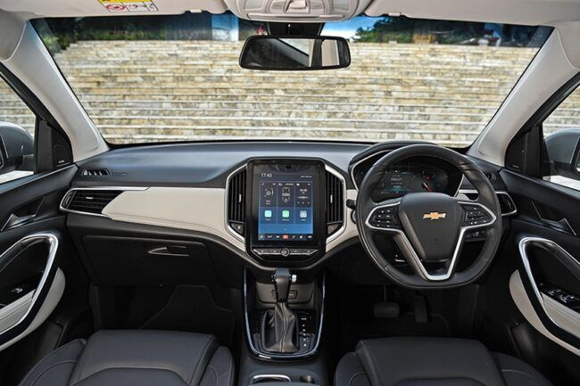 Hiburan dalam kabin dihadirkan melalui layar sentuh 10,4 inch dengan Chevrolet Link. Tak main-main, pada model LT dan Premium terdapat sembilan speaker Infinity by Harman Kardon yang memanjakan telinga penggunanya. Keberadaan panoramic roof di spek tertinggi memberikan kesan mewah.