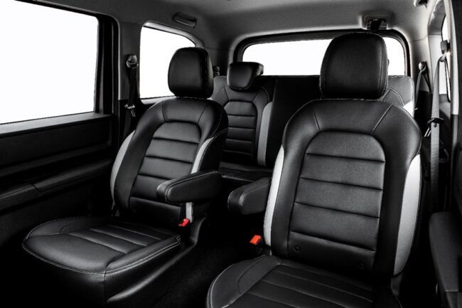 Untuk interior, pembuat mobil tetap memilih pendekatan minimalis. Sangat sedikit tombol pengaturan untuk fitur, juga buat sistem infotainment. Namun mereka menawarkan jok kulit, trim mengilap, banyak ruang penyimpanan, AC, kamera mundur. Dan ada cruise control pada varian tertinggi.
