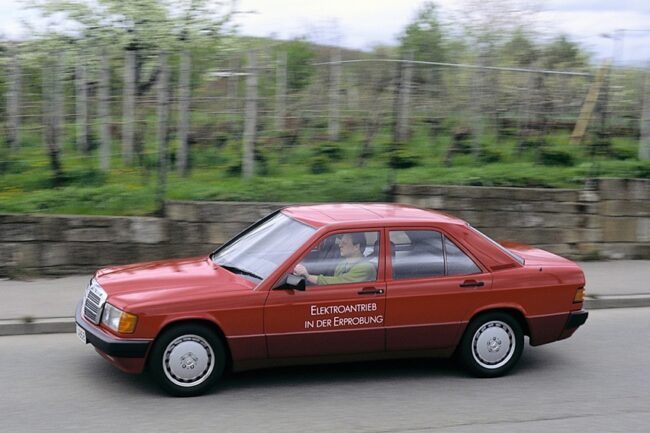 Tesla kini jadi produsen mobil listrik tersohor seantero jagad. Tapi tahukah Anda, sebelum mereka datang sudah ada produsen yang membuat mobil elektrik (EV). Tepatnya pada 1990, Mercedes-Benz mengenalkan sedan listrik berjuluk 190E Elektro. Kemudian versi lebih sempurna tampil publik di Geneva Motor Show 1991. Sebagai mobil sedan kompak, paras dan bodi mirip dengan saloon jadul berkode W201.