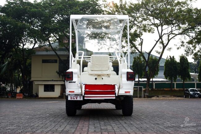 Kemarin Paus Fransiskus menyapa warga Jakarta menggunakan Kijang Innova Zenix V HEV. Nah, hari ini rencananya diadakan misa akbar di Gelora Bung Karno mulai pukul 12.00 WIB. Ia bakal menunggangi Maung MV3 Pope Mobile buatan PT Pindad guna mendukung perjalanan operasional yang bakal dihadiri sekitar 90 ribu umat Katolik. Kendaraan memang disiapkan secara khusus untuk dirinya. Unit dilengkapi bendera dan segel Vatikan serta pelat nomor SCV1 atau Status Latin Civitatis Vaticanae (Negara Kota Vatikan).