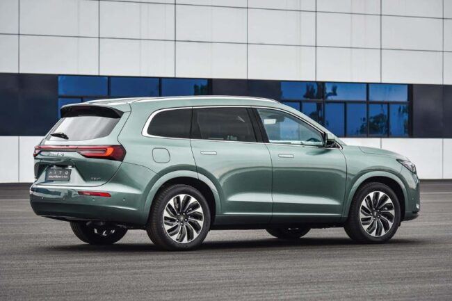 Beralih pada model M9. Ini adalah SUV yang lebih besar dengan tawaran dimensi 5.230 mm, lebar 1.999 mm, tinggi 1.800 mm dan sumbu roda mencapai 3.110 mm. Bisa dibilang model ini adalah model flagship dari merek Aito.