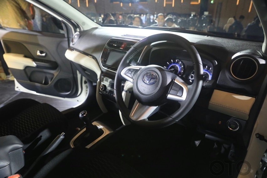 Fitur keselamatan lain, anti-lock braking system (ABS) yang mencegah roda terkunci saat dilakukan pengereman mendadak. Kemudian tidak ketinggalan, Emergency brake signal (EBS) dan Assuring 7 seat belt indicator. Toyota juga meningkatkan fitur kenyamanan Rush anyar. Sebut saja smart start/stop engine button, sehingga Anda tidak perlu lagi anak kunci saat mengaktifkan dan mematikan mesin. Cukup tekan tombol yang ada di dashboard, maka mesin otomatis aktif. Begitupun saat ingin menonaktifkannya. Disediakan pula kamera parkir. Bahkan soket charger disediakan 3 buah di setiap baris.