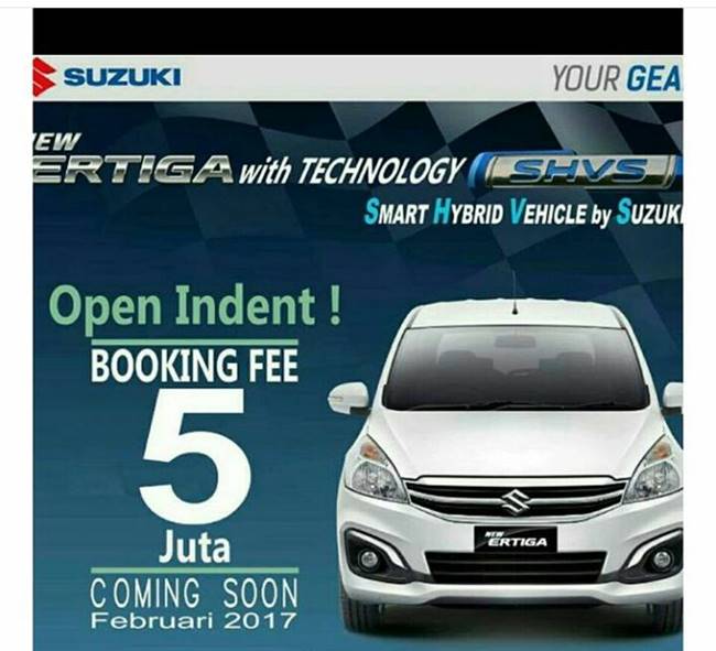 Dari poster yang mereka bagikan, konsumen sudah bisa melakukan indent dengan biaya booking Rp 5 Juta. Sementara untuk harganya, sesuai janji SIS, Suzuki Ertiga diesel berteknologi SHVS dibanderol harga kompetitif yakni Rp 220 Juta.