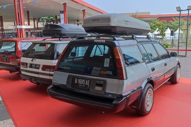 Toyota Sprinter Carib 4WDNah, kalau Toyota Sprinter Carib 4WD yang satu ini sudah sering malang melintang di berbagai pameran retro. Kebetulan sang pemilik telaten mendandani sangat rapi, hingga sedap dipandang dari segi manapun. Asal tahu, mesinnya bervolume 1,6 liter berikut penyaluran manual lima speed. Kelengkapan terpasang meliputi Toyota OEM roof bar, Hapro Roady 450 roof box, Hella high mount brake lamp. Lanjut sepatu dipercayakan pakai Tom’s Vesta dan XP Performance Ignition Module.
