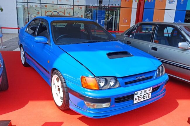 Toyota CaldinaCaldina merupakan produk Toyota berbekal mesin 2,0 liter turbo. Penyaluran daya via transmisi manual lima percepatan. Kelengkapan mobil keren era 90-an ini terbilang oke. Anda bisa menjumpai Toyota Caldina Recaro Artista front seat, setir menggunakan milik Carina E, TRD instrument panel, under seat tray compartment, Morette twin headlamp. Terus ada anti-freeze side mirrors, Cromax all around glass, twin-pot brake calipers dan TRD T3 wheels.