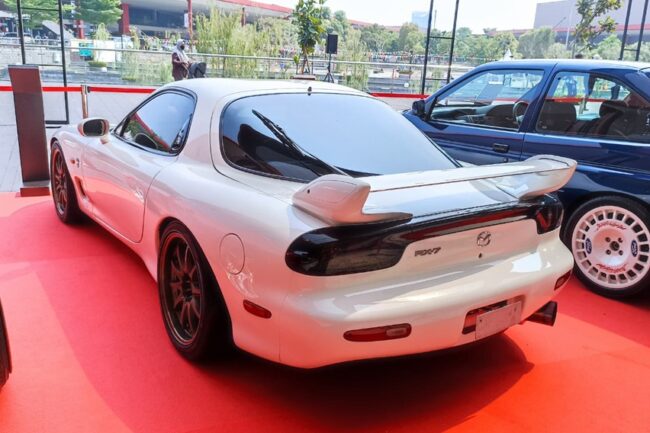 Mazda RX7Mazda RX7 keluaran 1992 juga punya tarikan garis bodi luar menawan. Walau telah berusia selama dua dekade, rancang bangun tubuh luar seolah abadi. Ia tetap tampil penuh aura sporty dengan kelir putih mulus di sekujur tubuh. Untuk mempermanis kaki-kaki, dipakaikan pelek bercat emas berpalang rapat. Terus lip spoiler gelap dipasang di depan plus sayap belakang membentang.