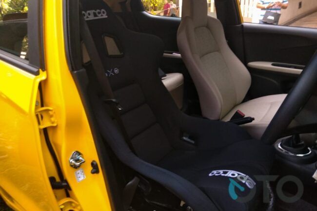 Nah, satu lagi yang cukup spesial. Tempat duduk pengemudi sudah diganti model bucket seat Sparco Evo. Jok ini sanggup memeluk tubuh dengan baik jika sedang menikung. Tapi tidak termasuk seatbelt lima titiknya. Masih pakai sabuk pengaman bawaan mobil. “Jok kami pasang Sparco Evo, supaya tetap safety pengemudinya. Barang ini juga cukup spesial sejujurnya. Saya pakai saat event Formula Drift 2012. Tapi di retrim dan restore ulang supaya bagus lagi,” ucap Dipo.