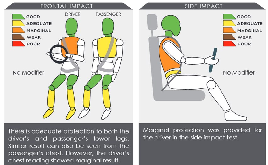 Hari ini (5/2) ASEAN NCAP merilis hasil yang mereka temukan. Adalah tipe GLS M/T yang dijadikan objek pengujian. Tipe ini dijual di Indonesia dengan harga Rp 211,55 juta. Tesnya juga komprehensif, tentunya sesuai standar organisasi itu. Meliputi tiga aspek utama; perlindungan penumpang dewasa (Adult Occupant Protection-AOP), perlindungan penumpang balita (Child Occupant Protection-COP), dan penunjang keselamatan (Safety Assist- SA). Metodenya, dengan menabrakkan kendaraan ke objek diam di bagian depan, dan membiarkan objek ditabrak dari sisi kanan.