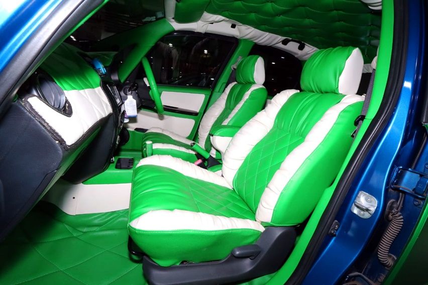 Adapun material MBtech yang digunakan, Camaro Off White (MB 9006) dan Black (MB 9001) untuk dashboard dan doortrim. Lalu pria yang tergabung dalam komunitas Startech itu, memilih New Superior White (MB 8805) bersama Black (MB 8801) untuk membungkus bangku, sisi pintu dan plafon. Kedua bahan turut diaplikasikan ke pilar, tuas transmisi, konsol tengah, kemudi dan boks audio.