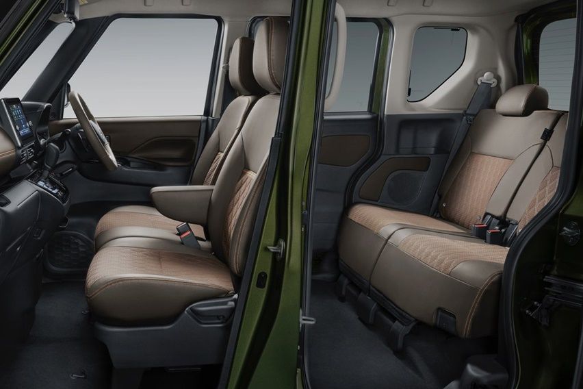 Sisi lainnya, hiasan samping dan lengkungan roda dibuat hitam demi menonjolkan karakter dan keunikan SUV. Ia tampil mencolok, kombinasi warna tubuhnya hijau dan putih. Makin terlihat menarik lantaran rel atap perak terpasang. Pelek jua pakai model dual tone selaras laburan tubuh, sehingga memberi harmonisasi unik. Tapi ketika melihat buritan, mengingatkan kita pada sosok Nissan Serena. Pintu belakang rata, garis kromium tengah dan lampu belakang vertikal. Maklum, ia juga berbagi platform dengan Nissan Dayz, saudara dekatnya.
