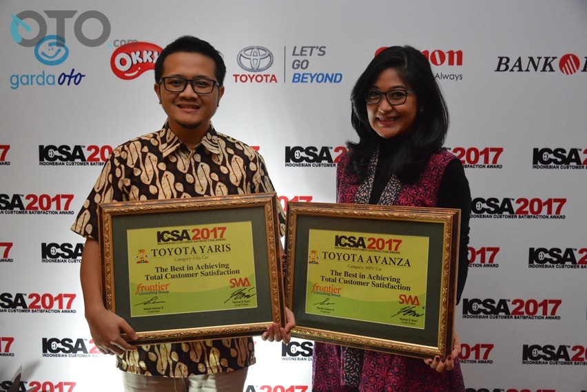 Dua produk Toyota mendapat anugerah Indonesian Customer Satisfaction Award (ICSA) 2017. ICSA adalah ajang reguler pemberian penghargaan terhadap perusahaan yang meraih prestasi terbaik dalam hal kepuasan pelanggan. Program penghargaan yang pada tahun ini mencapai tahun penyelenggaraan ke-19, merupakan hasil kerja sama antara Majalah SWA dengan FRONTIER Marketing Research, konsultan riset kepuasan pelanggan.