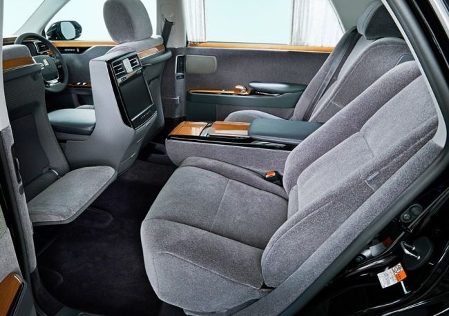 Kabin yang semakin lapang ditambah banyak peranti canggih masa kini. Dua jok individual di belakang, dapat diatur melalui layar LCD besar yang terletak di tengah arm rest. Monitor juga berfungsi sebagai kontrol penyejuk udara dan sound system dengan 20-speaker. Kebutuhan lain untuk kenyamanan tetap tersedia seperti lampu baca, meja untuk menulis dan sarana hiburan. Sentuhan mewah berasal dari penggunaan kulit dan wool berkualitas tinggi tergantung varian. Fitur keselamatan Toyota Safety Sense P yang terdiri dari collision avoidance support, blind spot monitoring dan rear cross traffic turut tersedia. (Odi/Van)