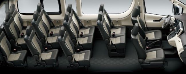Kemudahan mengakses kabin turut meningkat. Kenyamanan dan kadar keselamatan bisa dimaksimalkan berkat sasis anyar yang dikembangkan berdasar pada TNGA. Diklaim, dengan kenyamanan Hiace baru, penghuni kabin tak cepat lelah dalam perjalanan panjang sekalipun. Ada pilihan dengan kabin yang bisa diisi 12, 15, 15 dan 17 orang. Interior dispesialisasikan dengan fungsi yang bisa mendukung bisnis seperti pariwisata, travel dan shuttle.
