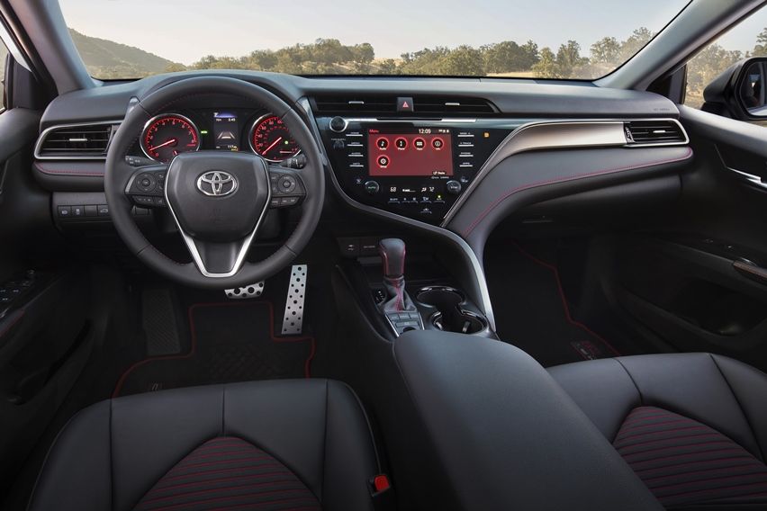 Ketika Anda menengok kabin, Camry TRD banyak bernuansa merah. Kabin dihiasi dengan jok depan Black Sport SofTex. Aksen merah terlihat pada sandaran kepala berbordir TRD yang dijahit kontras. Lingkar kemudi berbalut kulit juga memiliki jahitan merah. Bahkan sabuk pengamannya merah. Di sana, Toyota menyediakan empat pilihan warna: Supersonic Red yang dramatis, Windchill Pearl, Celestial Silver Metallic dan Midnight Black Metallic. Unit segera disalurkan ke konsumen pada September mendatang. (Alx/Odi)