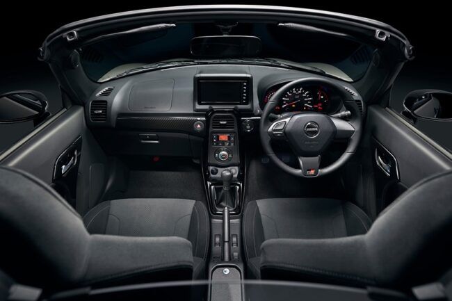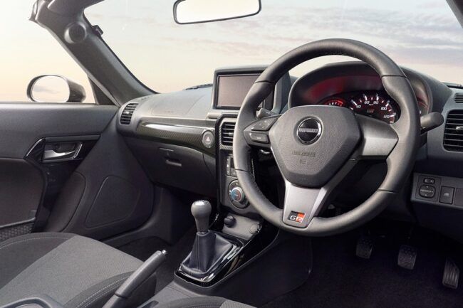Interiornya turut ditransformasi di beberapa area. Jok Recaro dengan bordir logo GR dipasang. Dia dipadu bersama kemudi Momo berbalut kulit dengan warna gun metallic dan konsol tengah piano black. Pengemudi dimanjakan meter display berpenampilan agresif, yang mempengaruhi kesenangan berkendara. Tak lupa ada fitur Active Top untuk buka-tutup atap, ini menyempurnakan ubahan yang diberikan Gazoo Racing.