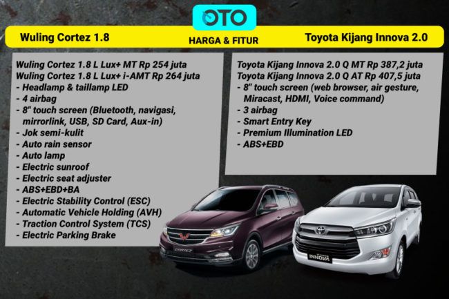 Menarik kesimpulan dari komparasi ini mudah saja. Cortez unggul dari Innova hampir di semua aspek. Harganya yang jauh lebih murah semakin membuat Innova tertunduk malu di hadapannya. Hanya soal citra merek yang menjadi batu sandungan besar bagi Wuling Motors. Karena konsumen yang skeptis dan awam soal produk, pasti lebih memilih Toyota untuk mendapat rasa aman meski harus membayar mahal. n awam soal produk, pasti lebih memilih Toyota untuk mendapat rasa aman meski harus membayar mahal. (Odi/Van)