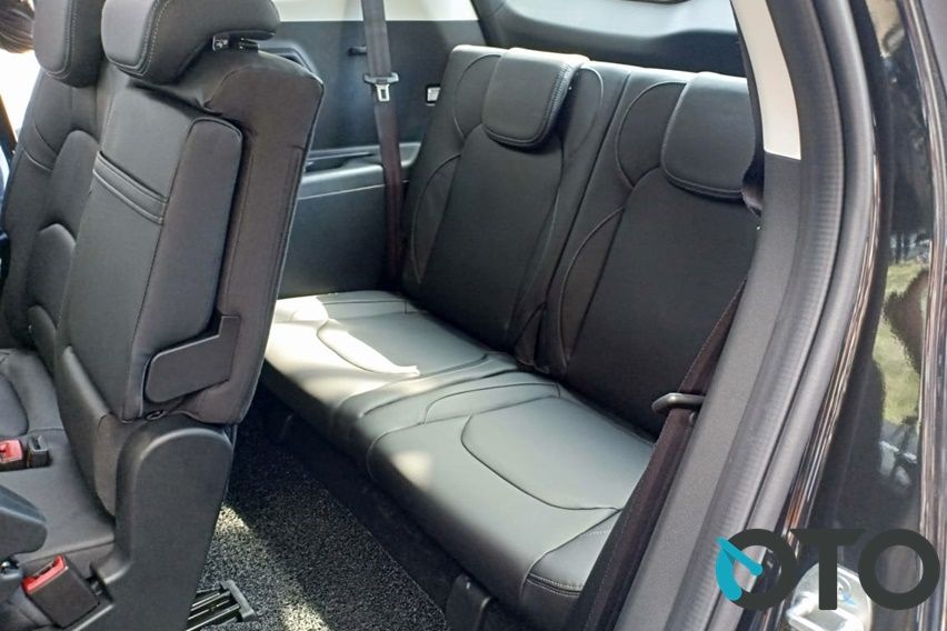 Dengan penambahan kapasitas duduk, Almaz bisa menampung hingga tujuh orang. Meski demikian, sifatnya hanya penambahan ketimbang perubahan. Untuk mengakomodir akses ke baris tiga, kursi deret kedua bisa maju-mundur (sliding). Bangku paling belakang bisa dilipat 50:50 hingga rata lantai. Menurut Wuling, orang dewasa punya ruang kaki yang cukup di bagian ini.