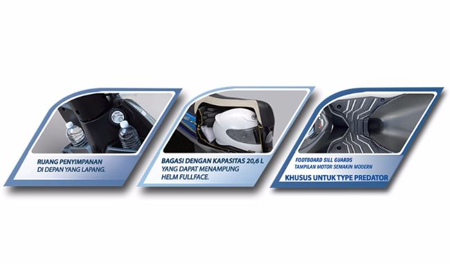Keunggulan Address dibanding skutik lain, bagasinya luas. Fitur ini disebut utility box, memuat helm full face dengan kapasitas mencapai 20,6 liter. Anda juga masih bisa meletakkan berbagai perlengkapan berkendara di dalamnya seperti sarung tangan, jas hujan dan lainnya. Rival Honda Spacy ini, masih memiliki kompartemen penyimpanan lain di dek depan. Di sana tersedia dua tempat untuk menyimpan botol minum, lumayan kalau kehausan selama perjalanan.