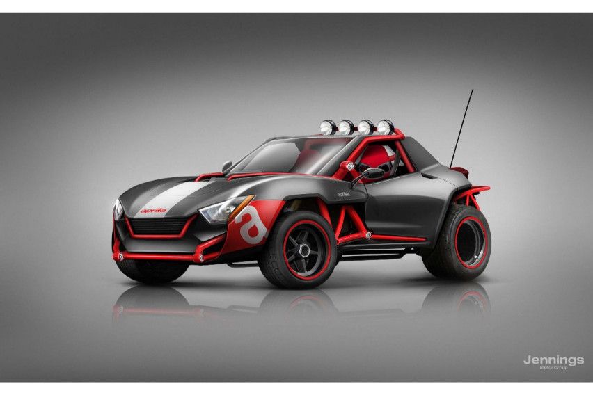 Pabrikan motor satu ini, awalnya memproduksi motor bermesin kecil dan skuter. Namun, kini Aprilia lebih dikenal sebagai produsen motor sport bermesin besar, contohnya RSV4. Jennings Motor Group pun mencoba menggambarkan karakter itu dalam ilustrasi gambar mobil. Hasilnya, sebuah mobil buggy offroad sport Aprilia yang tampak garang dan futuristik.