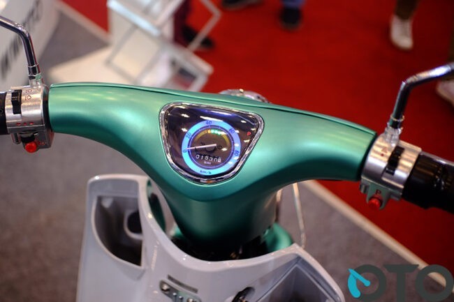 Untuk mengetahui informasi seputar motor, E-Classic dibekal panel meter yang menyatu dengan cover stang. Di situ ada keterangan sisa baterai, petunjuk kecepatan, dan indikator penting lainnya. Guna menemani aktivitas harian, sudah tersedia juga dermaga pengisian baterai gawai dengan model USB port.