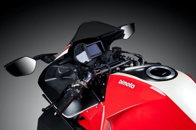 Hal itu nampak pada bagian muka yang memang mirip tunggangan terganas Kawasaki itu. Hanya saja, pihak pabrikan menyematkan winglet lebar di kedua sisi fairing. Namun ciri khas Bimota juga sangat kental. Utamanya menyasar pada area kaki-kaki. Di situ tertanam steering-hub dan memakai Swingarm menggantikan fork untuk kemudi roda depan.