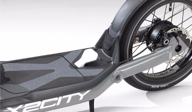 Motor listrik X2City aktif otomatis bila kecepatan otopet sudah mencapai 6 Kpj. Kemudian, Anda bisa mengatur kecepatannya melalui tuas yang terletak di stang. Terdapat lima pilihan kecepatan (8, 12, 16, 20 dan 25 Kpj). Motor elektriknya akan otomatis padam begitu tuas rem aktif. Di saat itulah kendaraan pintar ini berubah jadi otopet biasa. Gunakan kaki Anda untuk mengayuh pedalnya.