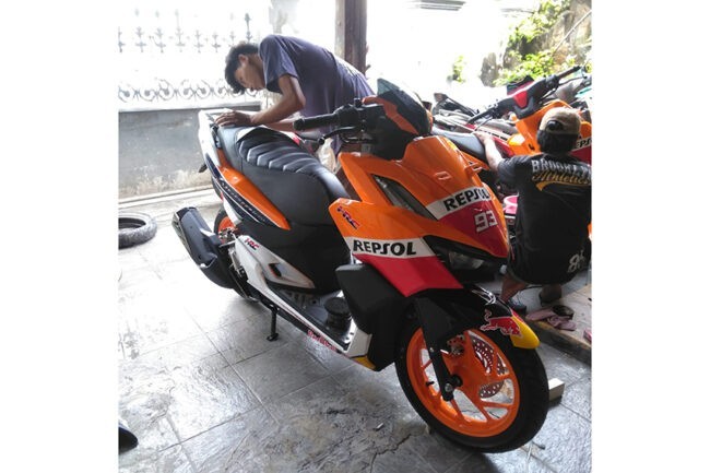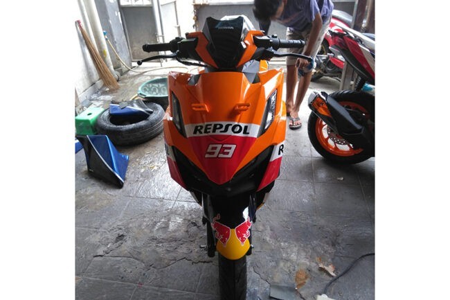 Tapi bila Anda sudah memiliki Honda Vario 160 dan jatuh cinta dengan livery ini, Salim tak menutup peluang untuk mewujudkannya. Dia mengatakan, untuk pengerjaan airbrush berseragam Repsol tersebut dibanderol mulai Rp 3 juta sampai Rp 4 juta.