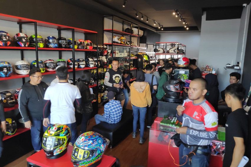 Tentu saja bukan hanya produk Kushitani. Sama seperti dua toko lainnya, RC Motogarage Gading Serpong juga menghadirkan beragam kebutuhan untuk pemilik motor. Untuk helm saja, mereka menjual sembilan brand helm kenamaan. Sebut saja Arai Helmet, HJC, Shoei, Shark, Nolan, AGV dan lain-lain. Belum lagi jaket, glove hingga sepatu.