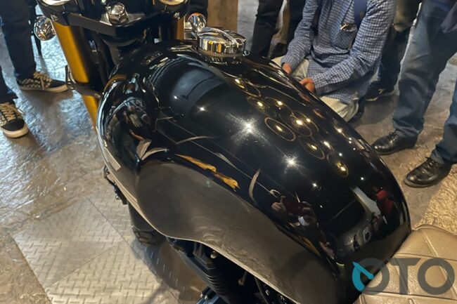 Tampilannya mengingatkan kita dengan Norton Commando. Dia sudah mengemas lampu depan LED dengan DRL, stang jepit, dan buntut ala bokong tawon. Gaya berkendara dari varian ini tentu lebih mengintimidasi ketimbang varian Scrambler.