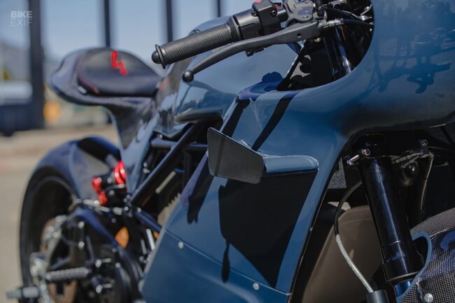 Builder juga dibantu oleh insinyur dari Lockheed Martin untuk membantu tata letak material. Ia membuat sepatbor, fairing dengan satu headlamp, tangki hingga buntut. Merasa ada yang kurang pada setelah membuat fairingg, Woolie akhirnya memasang winglet. Tak main-main, komponen itu menggunakan potongan sayap dari mobil F1. Setelah itu ia membentuknya dan meniru seperti yang menempel pada mobil balap Porsche. Semua dibuat agar motor tampil modern dan selaras dengan tren. Lalu ada tambahan jok single seat dari Saddlemen dan windscreen dari Zero Gravity.