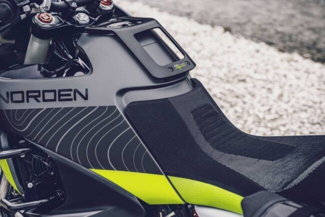 Sebagai kuda besi peruntukan luar ruang, Norden 901 juga diramu biar tangguh melahap medan rusak. Makanya motor dibuat jangkung. Terlihat jelas dari ground clearance yang menjulang. Disokong pula pemilihan roda 21-18 inci (depan-belakang). Bagian roda ini juga unik. Sektor pengereman terutama disc brake sudah ditambahkan cover. Selain itu, ada pula penutup mesin dengan bentuk cukup modis.